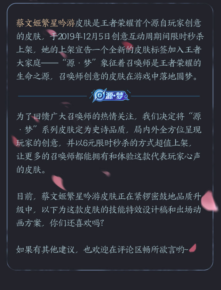 官方曾经承诺过蔡文姬繁星吟游皮肤将会优化成史诗品质,到赚